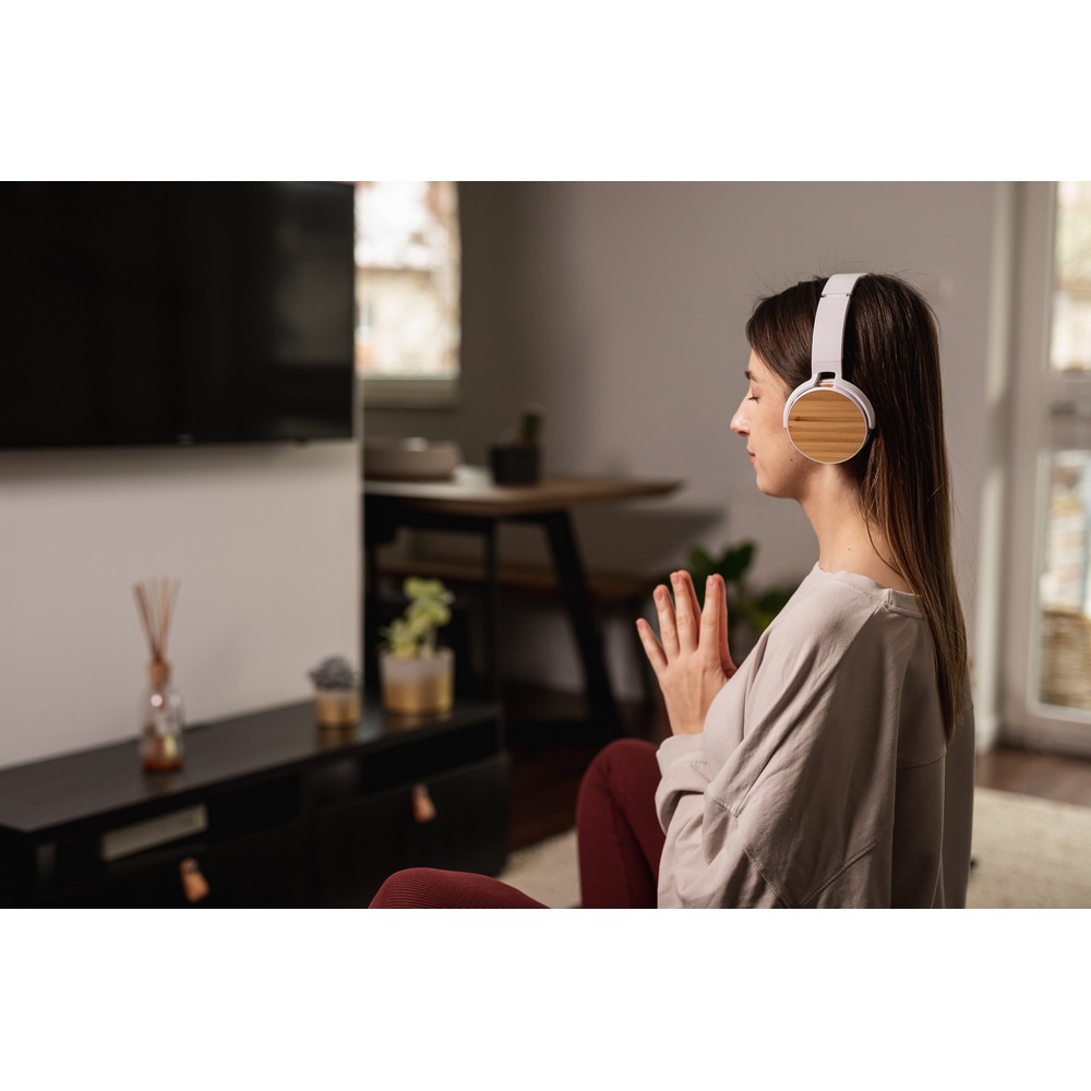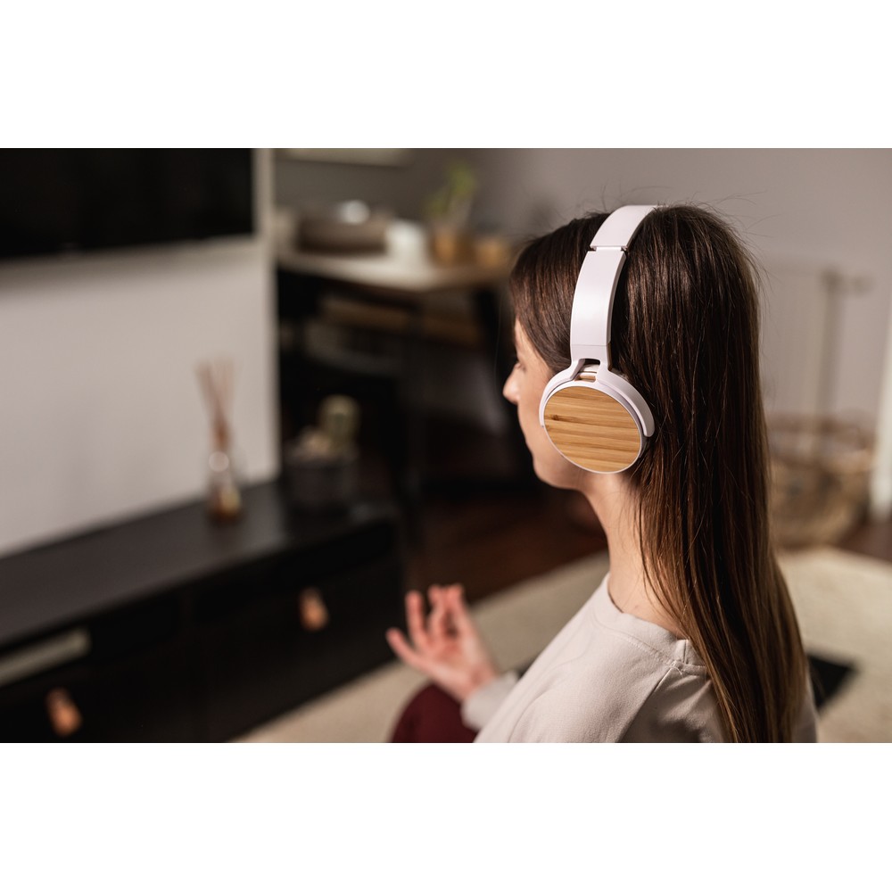 Die Kopfhörer „Ecover“ bieten ein beeindruckendes Klangerlebnis und sind perfekt für unterwegs. Mit ihrer kabellosen Bluetooth 5.0-Verbindung und einer Arbeitszeit von 6-8 Stunden können Sie Ihre Lieblingsmusik ohne Unterbrechungen genießen. Die faltbaren Kopfhörer sind mit Bambusdetails verziert und verfügen über eine integrierte Mikrofon- und Anruffunktion. Mit dem TF-Kartensteckplatz können Sie Ihre Musik auch ohne Smartphone hören. Die Kopfhörer haben eine Reichweite von bis zu 10 Metern und sind über USB wiederaufladbar. Ein Mikro-USB-Kabel ist im Lieferumfang enthalten. Genießen Sie Ihre Musik stilvoll und bequem mit den „Ecover“ Kopfhörern.