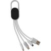 Das Ladekabel „Amaro“ ist der perfekte Begleiter für alle, die ihre Geräte unterwegs aufladen möchten. Mit seinen 4 Anschlüssen (USB, USB Typ C, Micro USB und iOS-kompatibel) ist es vielseitig einsetzbar. Das Highlight ist der praktische Karabiner, der es ermöglicht, das Kabel sicher an Taschen oder Schlüsselbund zu befestigen. Zusätzlich sorgt der beleuchtete Effekt nach der Gravur für eine individuelle Note. Mit dem „Amaro“ Ladekabel bleiben Sie immer verbunden, egal wo Sie sind.