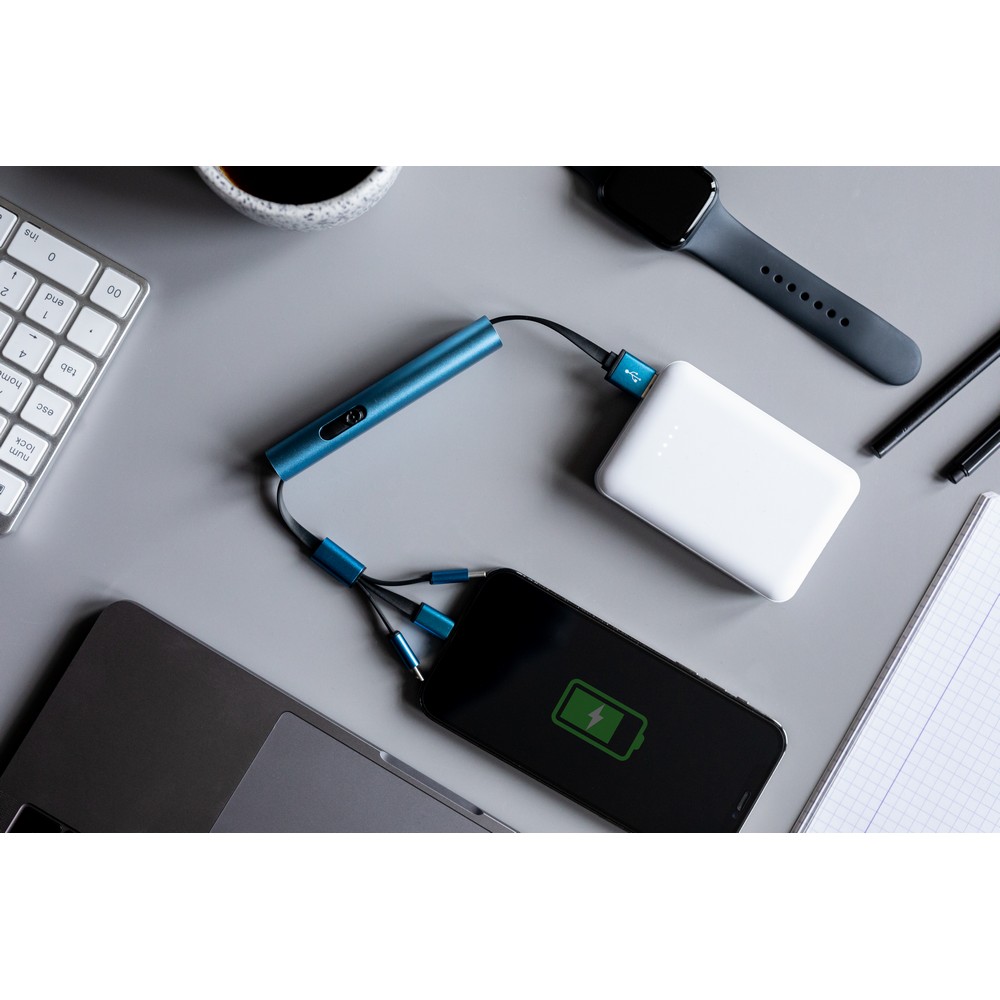 Das Ladekabel „Glowith“ ist die perfekte Lösung für alle, die ihre Geräte schnell und bequem aufladen möchten. Mit vier verschiedenen Anschlüssen – USB, Micro USB, USB Typ C und einem Stecker, der mit iOS-Geräten kompatibel ist – bietet es maximale Flexibilität. Das USB Typ C-Kabel verfügt sogar über eine Synchronisierungsfunktion. Mit einer Länge von 28 cm ist es kompakt und leicht zu transportieren. Das Highlight ist die große personalisierbare Fläche, die es zu einem einzigartigen Accessoire macht. Laden Sie Ihre Geräte stilvoll und effizient mit dem Ladekabel „Glowith“ auf.