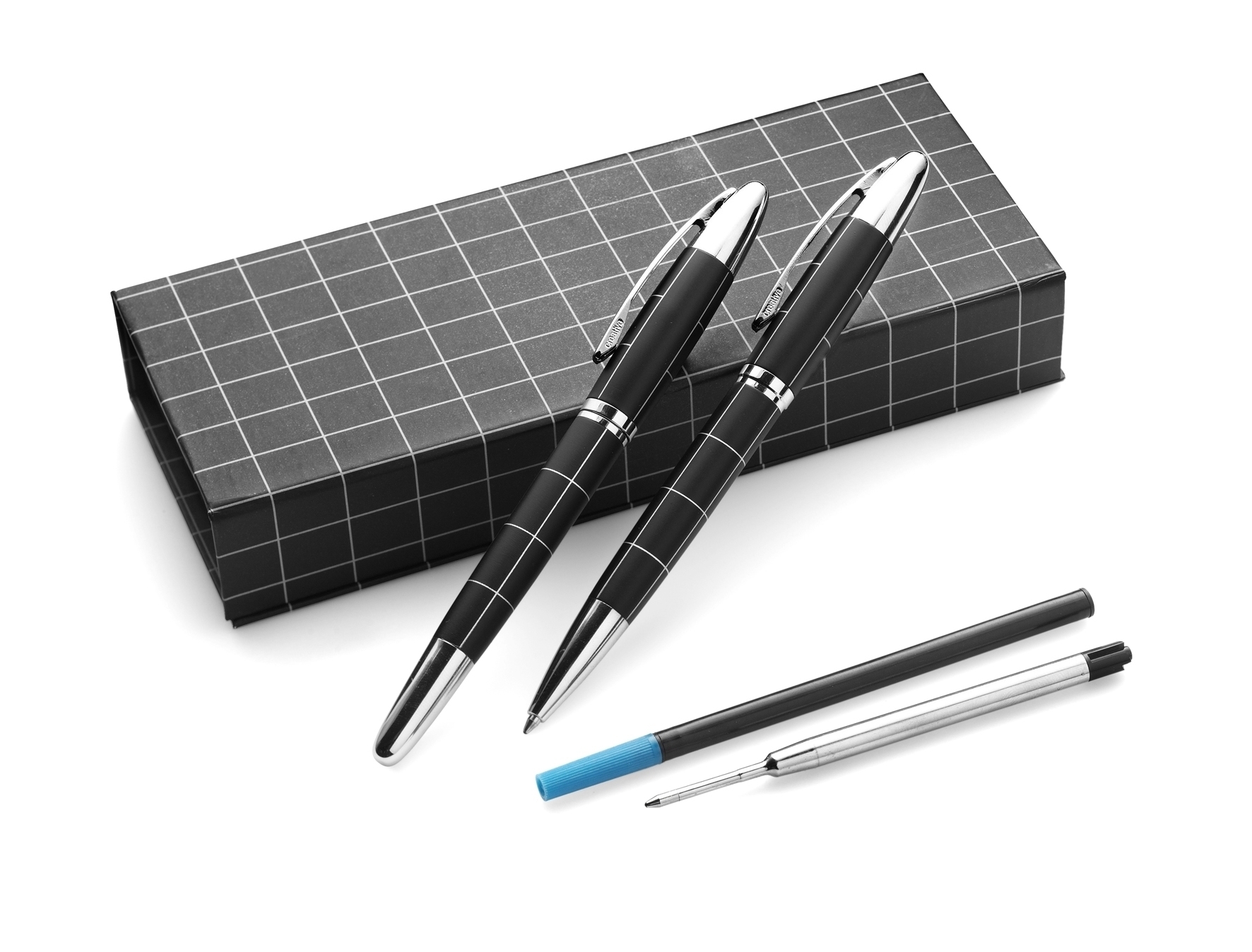 Das Schreibset „Peggy“ ist das perfekte Accessoire für stilvolles Schreiben. Es enthält einen Kugelschreiber und einen Rollerball-Stift mit zusätzlichen blauen Nachfüllungen. Das Set wird in einer Geschenkbox mit magnetischem Verschluss geliefert. Mit seinem eleganten Design und der hochwertigen Verarbeitung ist das Schreibset „Peggy“ ein ideales Geschenk für jeden Anlass. Lassen Sie Ihre Worte mit diesem exquisiten Schreibset zum Leben erwecken.