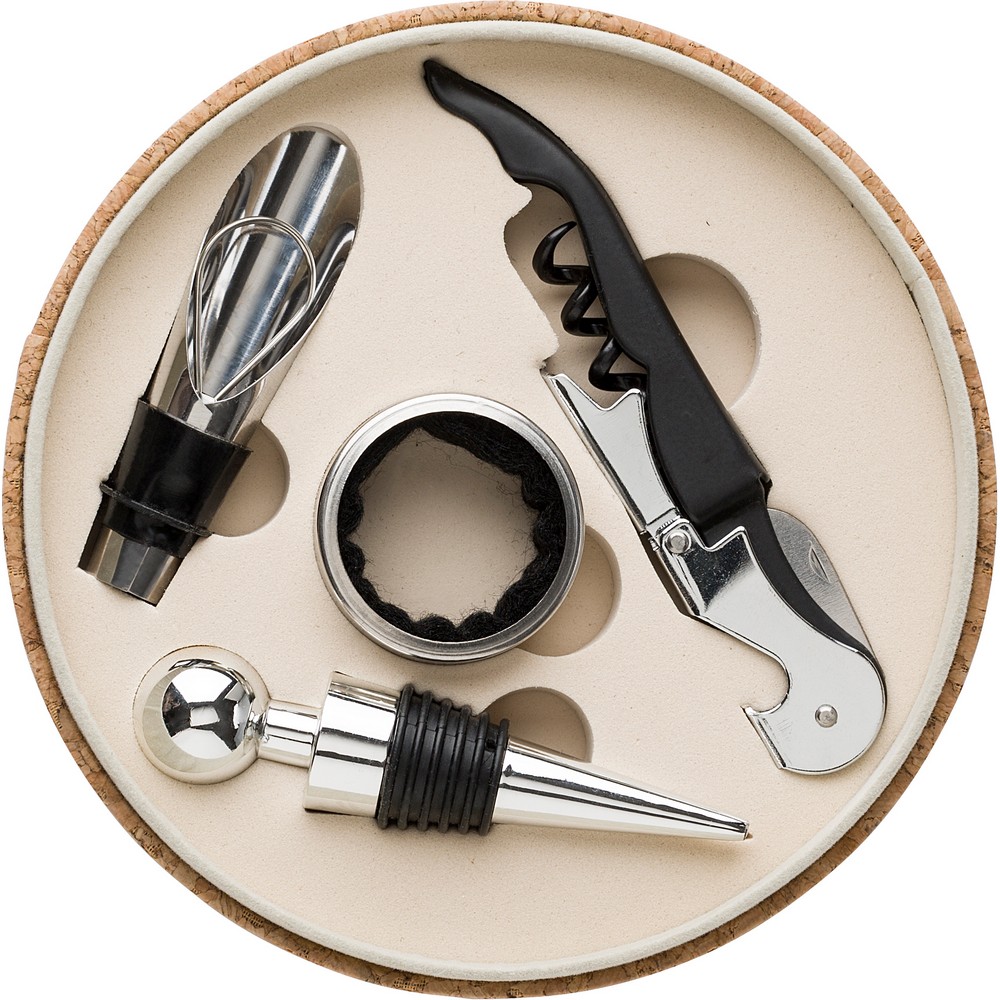 Entdecken Sie das elegante Weinset „Duisburg“, das in einer stilvollen Korkbox präsentiert wird. Dieses 4-teilige Set umfasst einen praktischen Kellnermesser, einen Tropfring, einen Stopfen und einen Weinausgießer – alles, was Sie für ein perfektes Weinerlebnis benötigen. Mit einem Durchmesser von 16,5 cm und einer Höhe von 4,5 cm ist es kompakt und leicht zu verstauen. Hergestellt aus hochwertigem Edelstahl, Kork und Kunststoff, vereint es Funktionalität und Stil. Ideal für Weinliebhaber und als Geschenk – genießen Sie unvergessliche Momente mit jedem Glas!